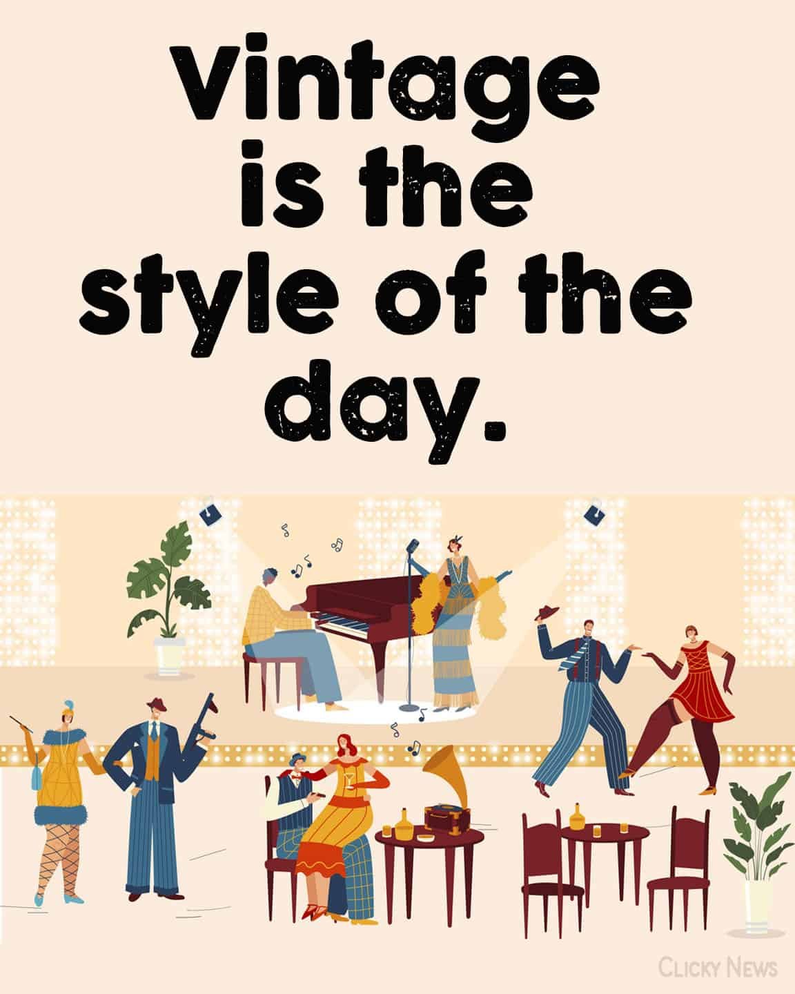 - Classic clothes and a happy vibe.