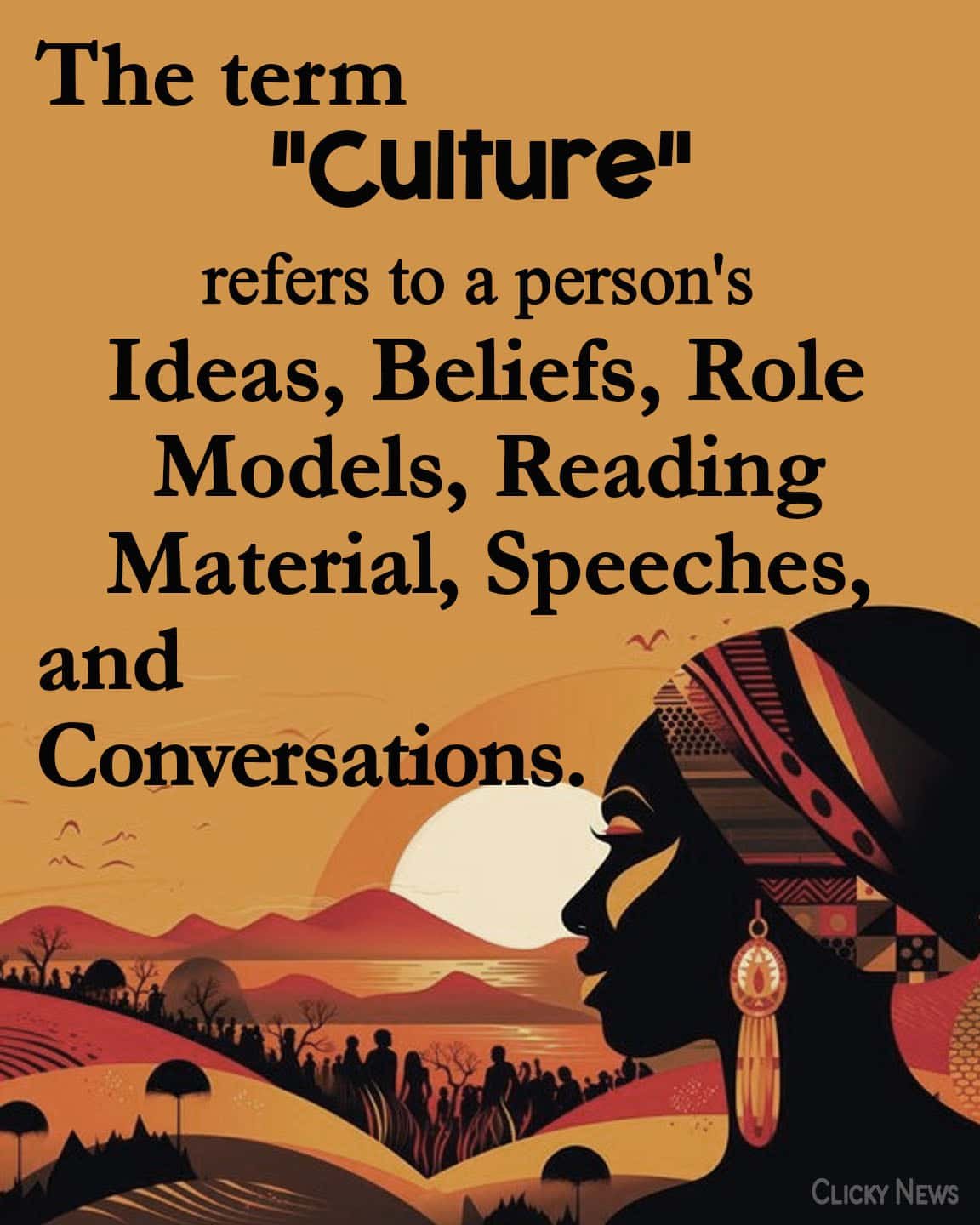 - The term “culture” refers to a person’s ideas, beliefs, role models, reading material, speeches, and conversations.