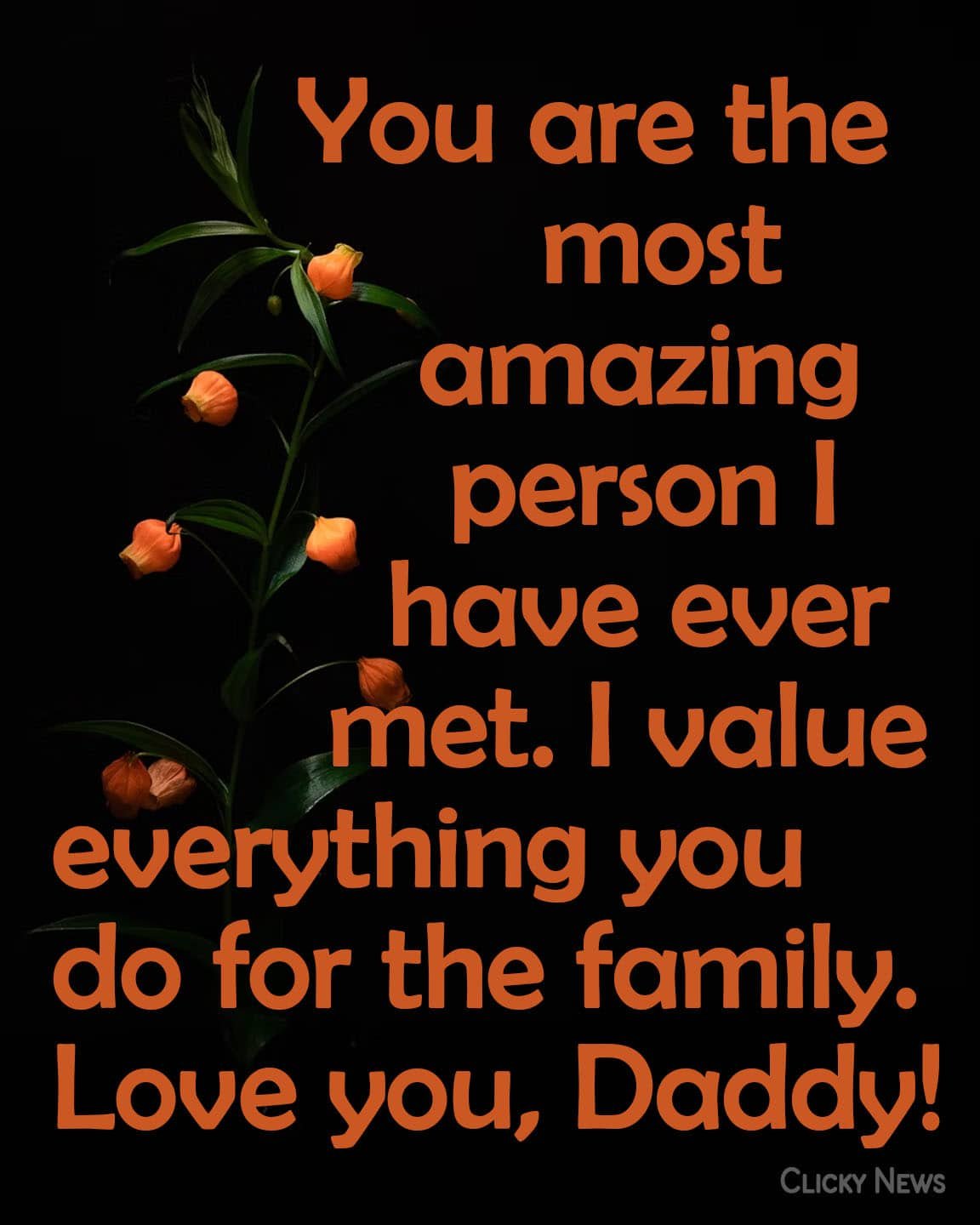 - You are the most amazing person I have ever met. I value everything you do for the family. Love you, Daddy!