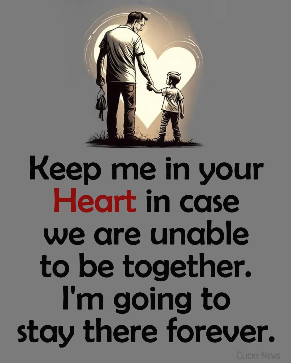 - Keep me in your heart in case we are unable to be together. I’m going to stay there forever.