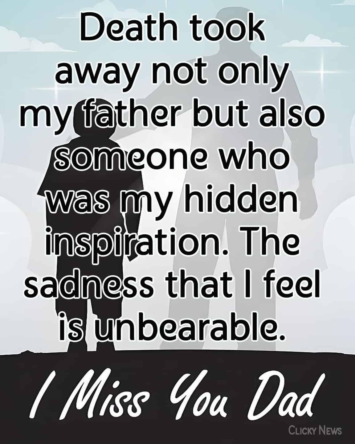 - Death took away not only my father but also someone who was my hidden inspiration. The sadness that I feel is unbearable. I miss you.