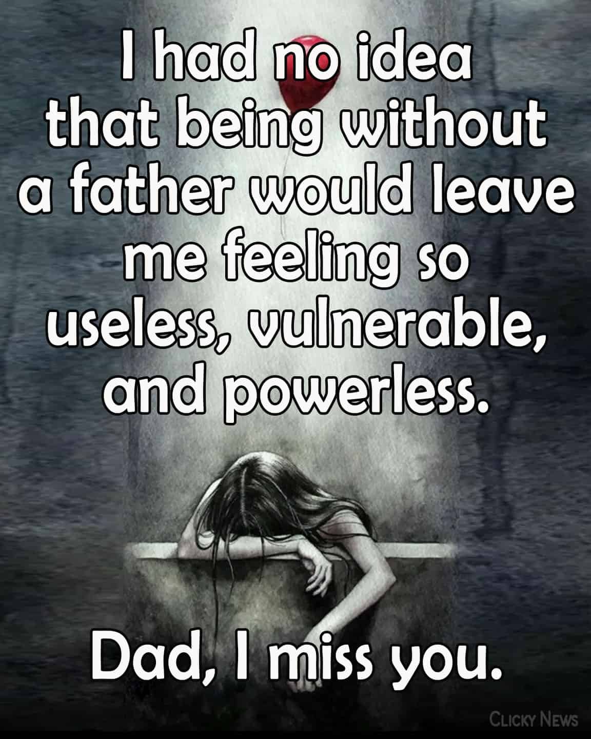 - I had no idea that being without a father would leave me feeling so useless, vulnerable, and powerless. Dad, I miss you.