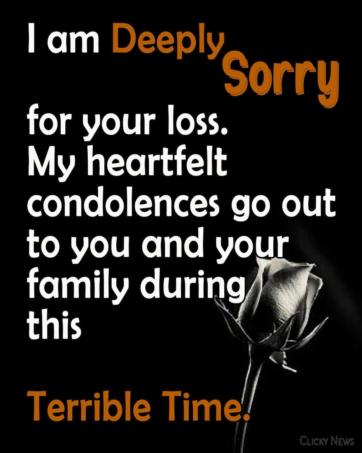 - I am deeply sorry for your loss. My heartfelt condolences go out to you and your family during this terrible time.