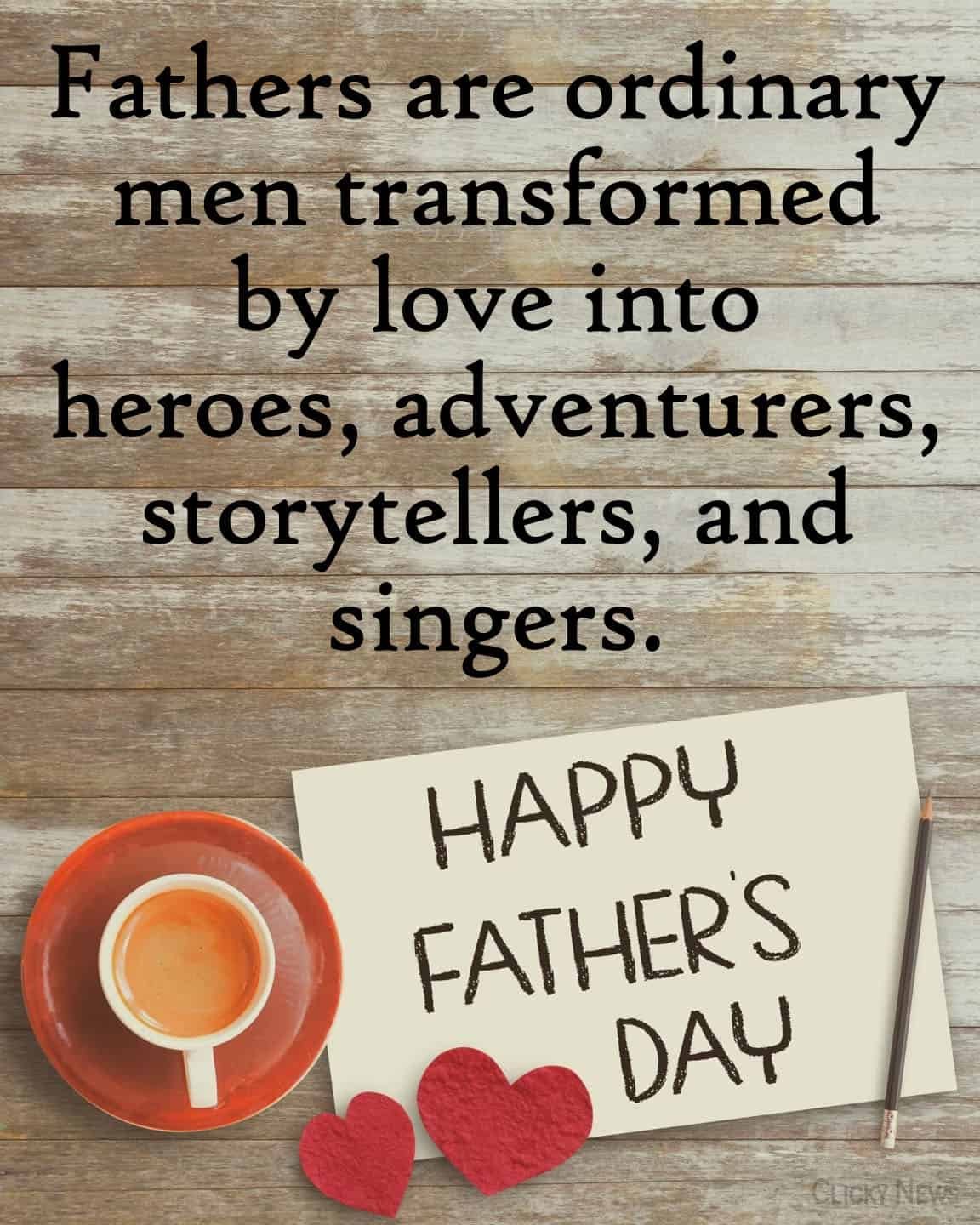 - Fathers are ordinary men transformed by love into heroes, adventurers, storytellers, and singers.