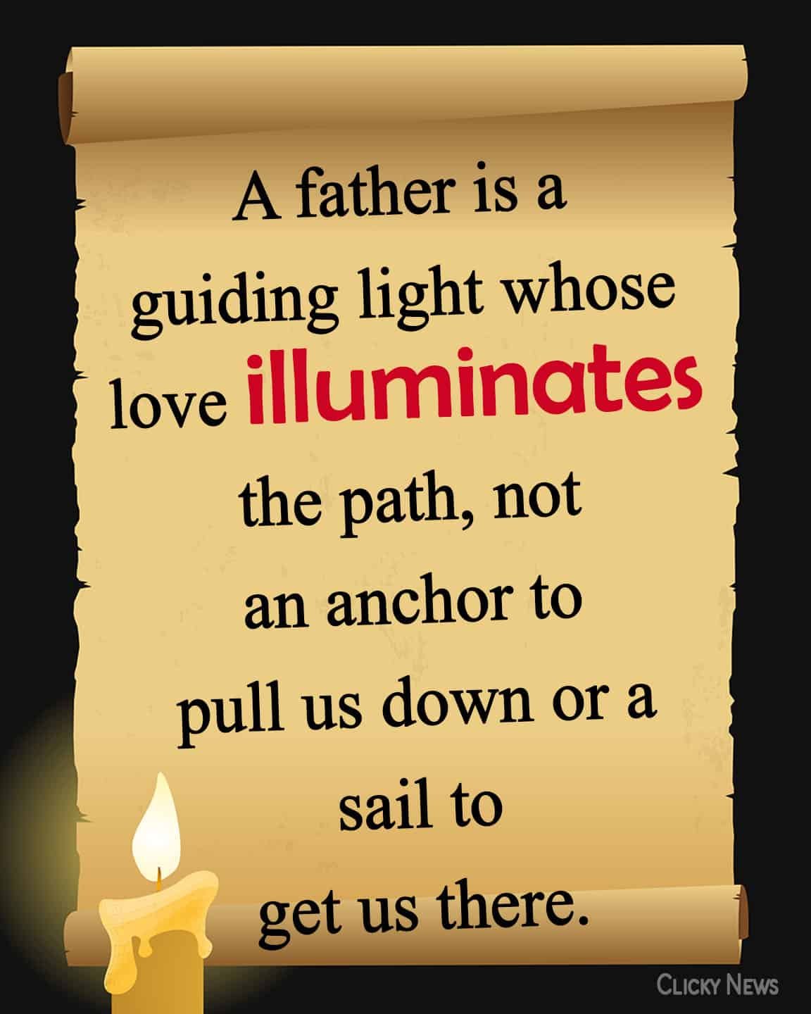 - A father is a guiding light whose love illuminates the path, not an anchor to pull us down or a sail to get us there.