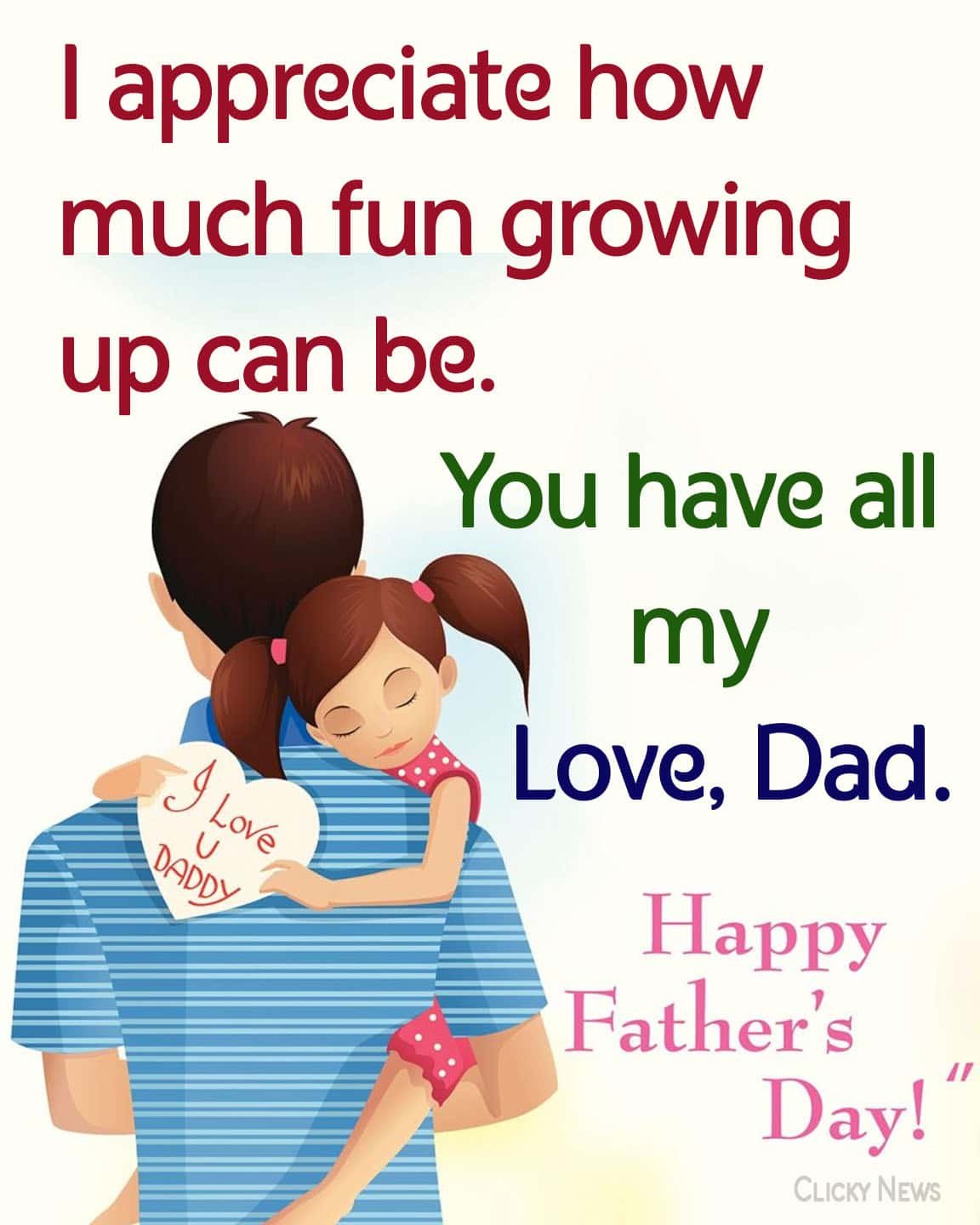 - I appreciate how much fun growing up can be. You have all my Love, Dad!