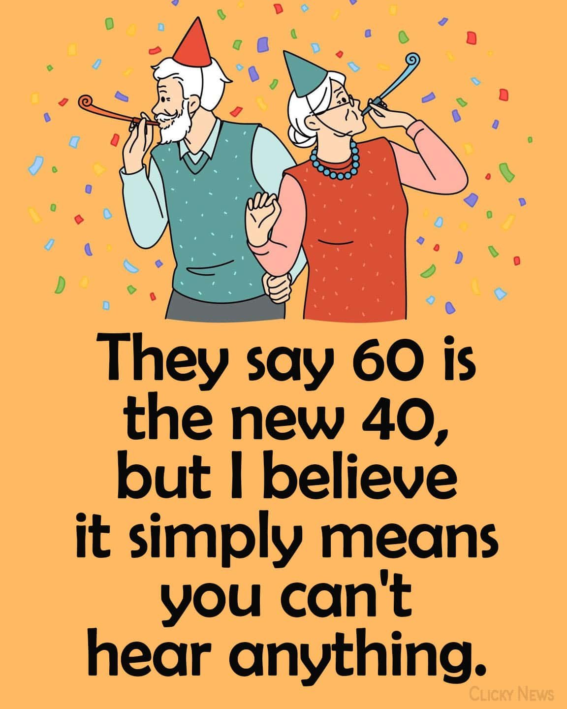• They say 60 is the new 40, but I believe it simply means you can’t hear anything.