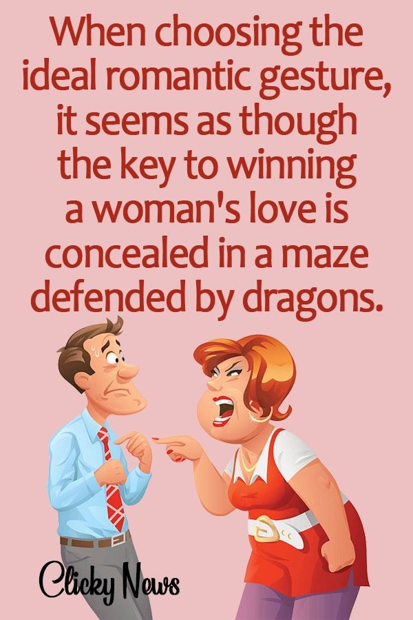 - When choosing the ideal romantic gesture, it seems as though the key to winning a woman’s love is concealed in a maze defended by dragons.