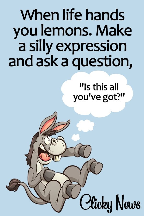 - When life hands you lemons. Make a silly expression and ask a question, “Is this all you’ve got?”