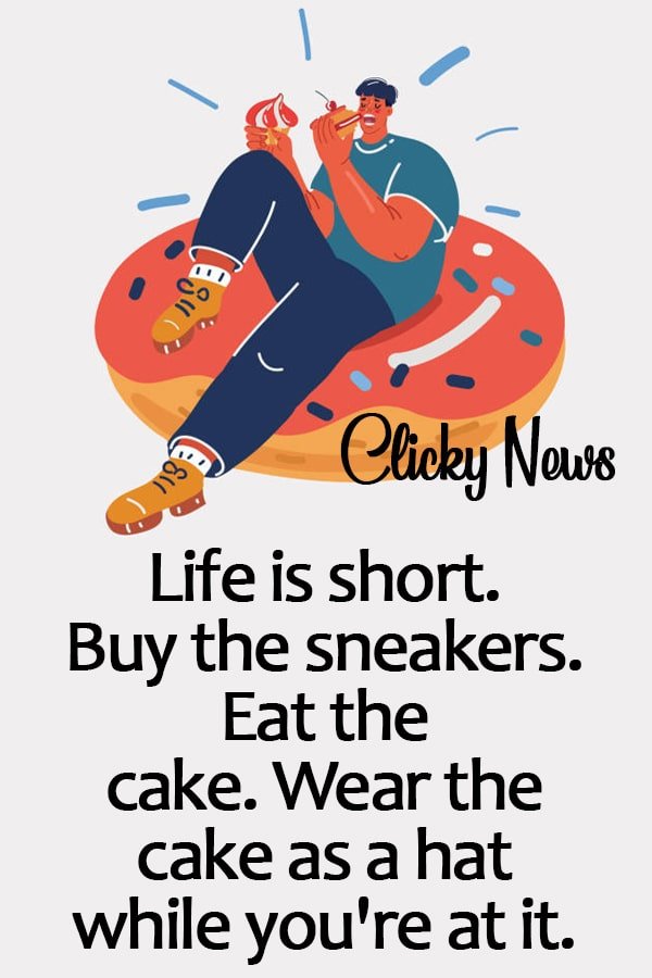 - Life is short. Buy the sneakers. Eat the cake. Wear the cake as a hat while you’re at it.