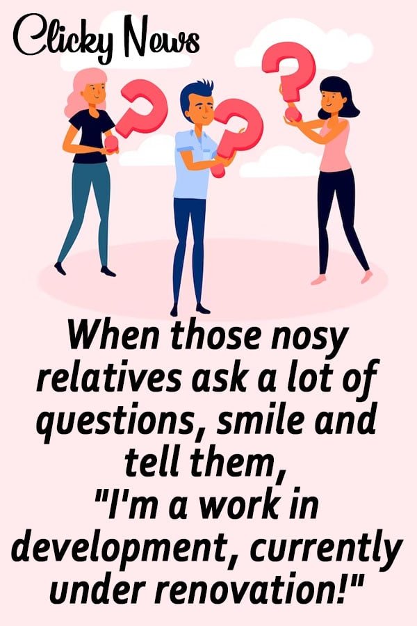 - When those nosy relatives ask a lot of questions, smile and tell them, “I’m a work in development, currently under renovation!”