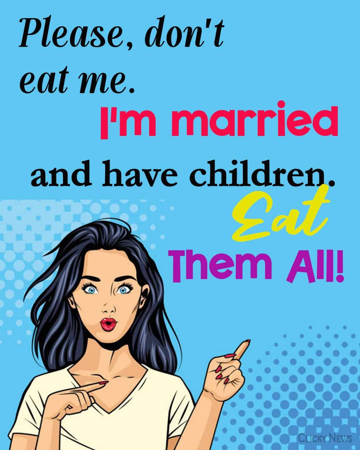 - Please, don’t eat me. I’m married and have children. Eat them all!