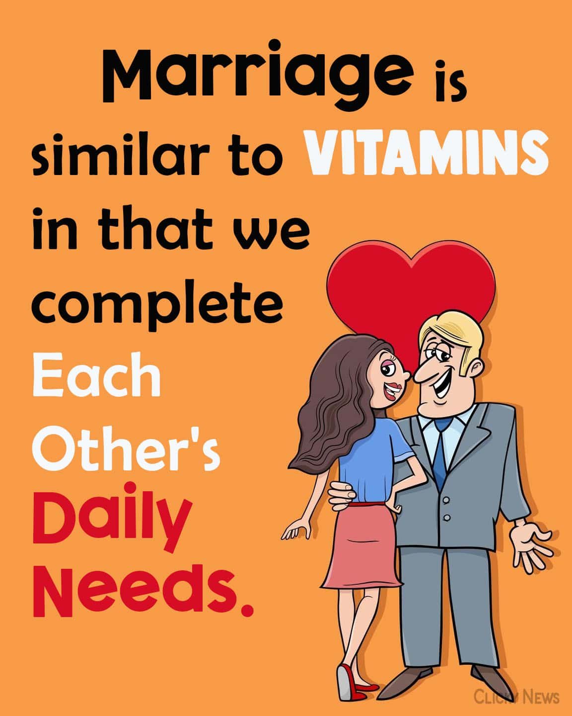 - Marriage is similar to vitamins in that we complete each other’s daily needs.