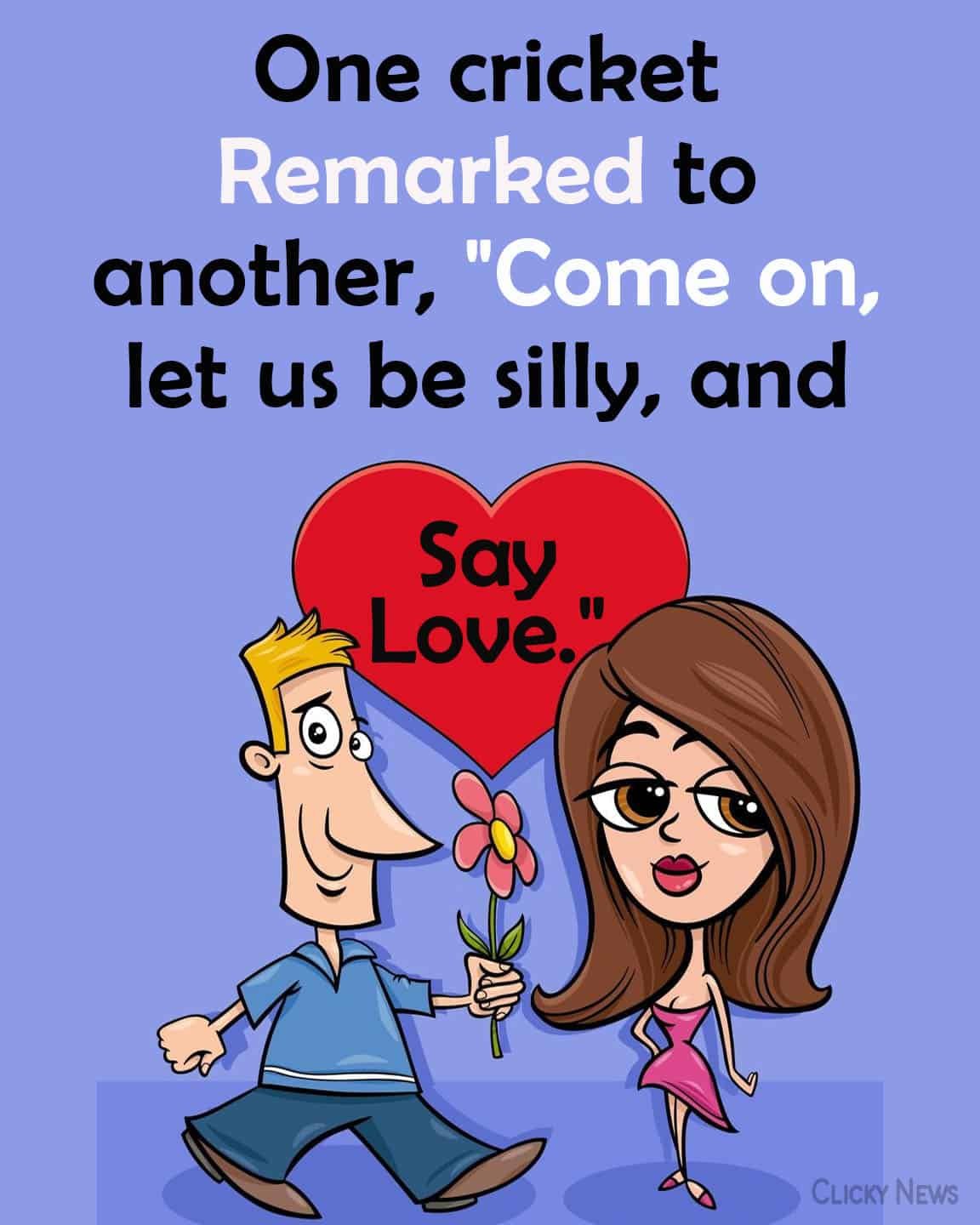 - One cricket remarked to another, “Come on, let us be silly, and say love.”
