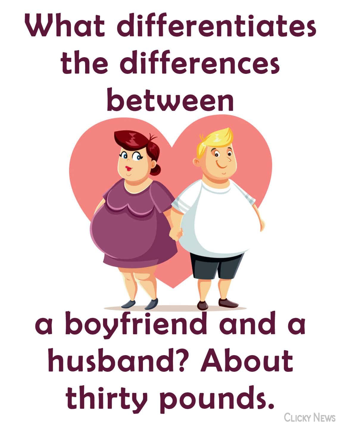 - What differentiates the differences between a boyfriend and a husband? About thirty pounds.