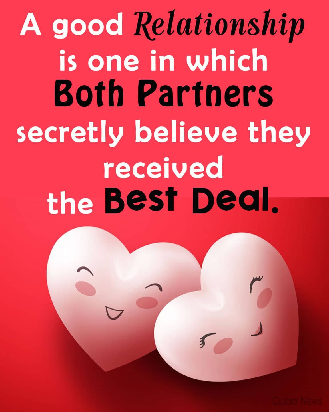 - A good relationship is one in which both partners secretly believe they received the best deal.
