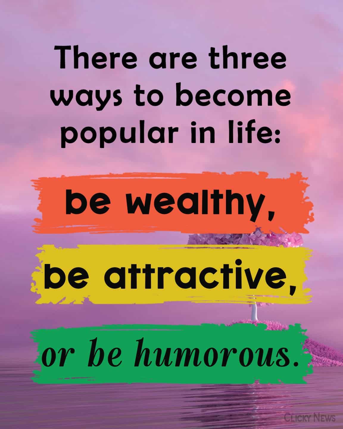 - There are three ways to become popular in life: be wealthy, be attractive, or be humorous.