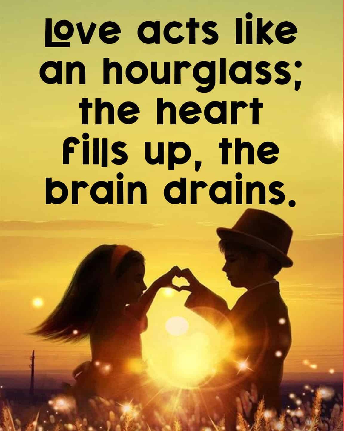 - Love acts like an hourglass; the heart fills up, the brain drains.
