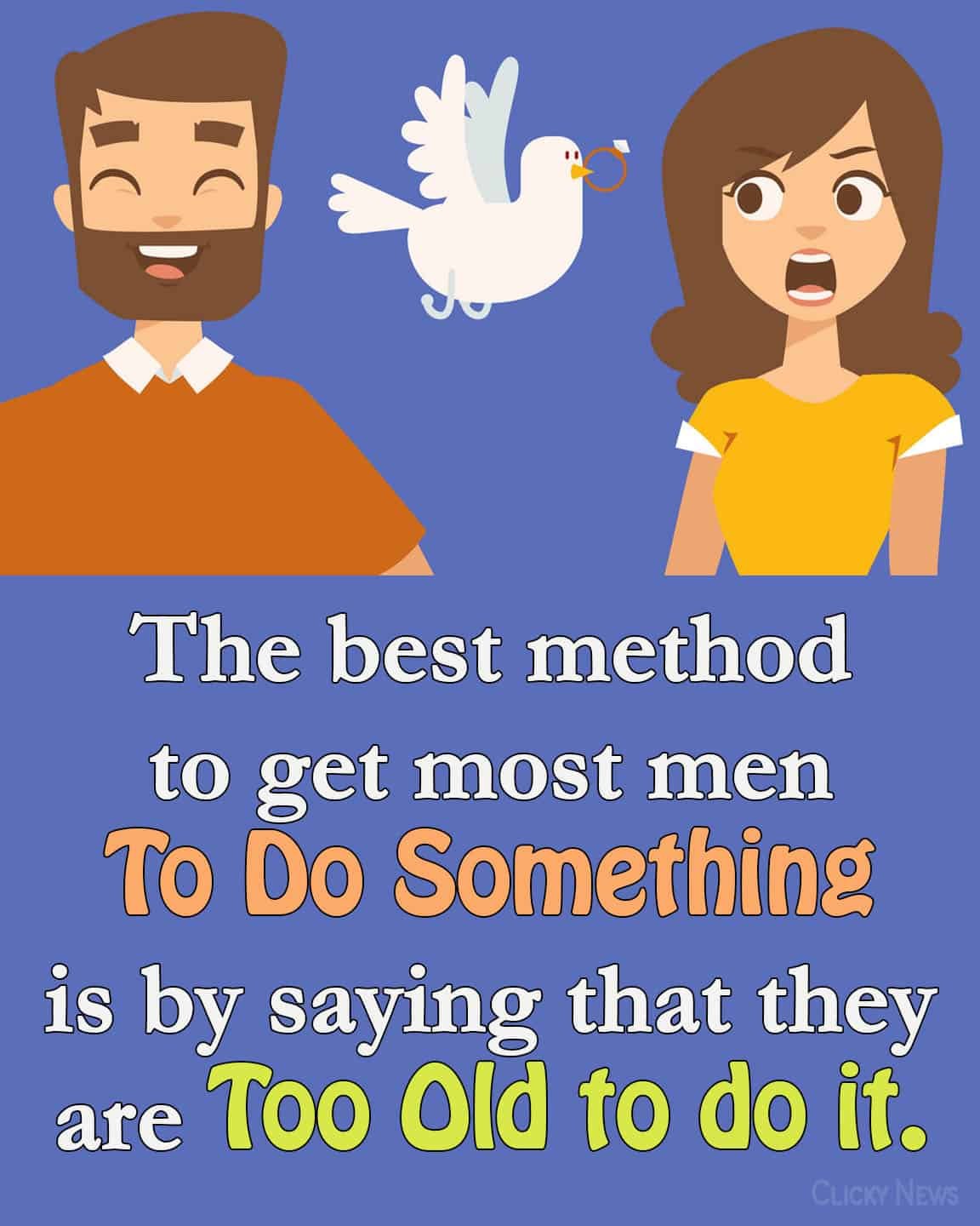 - The best method to get most men to do something is by saying that they are too old to do it.