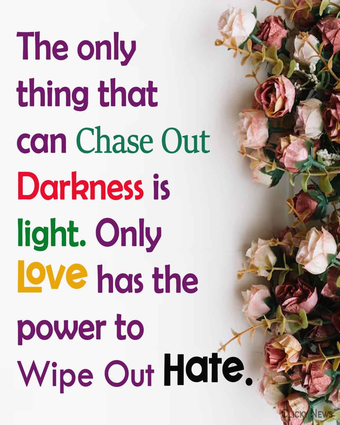 - The only thing that can chase out darkness is light. Only love has the power to wipe out hate.