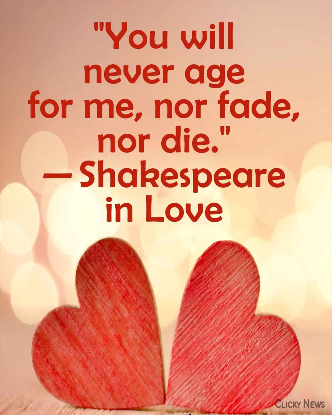 - “You will never age for me, nor fade, nor die.” — Shakespeare in Love