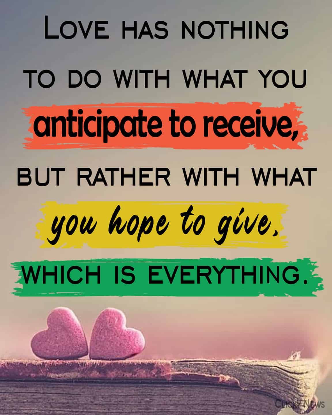 - Love has nothing to do with what you anticipate to receive, but rather with what you hope to give, which is everything.