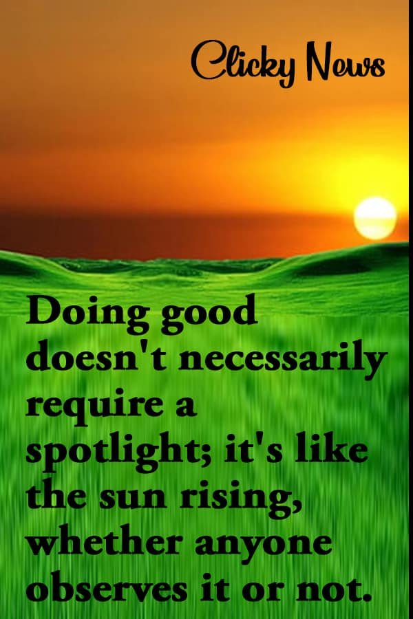- Doing good doesn’t necessarily require a spotlight; it’s like the sun rising, whether anyone observes it or not.