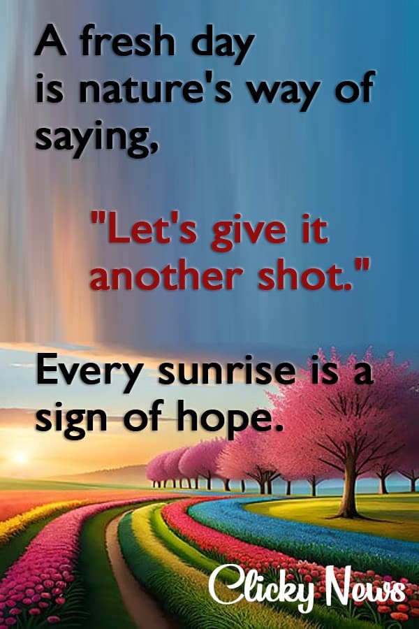 - A fresh day is nature’s way of saying, “Let’s give it another shot.” Every sunrise is a sign of hope.