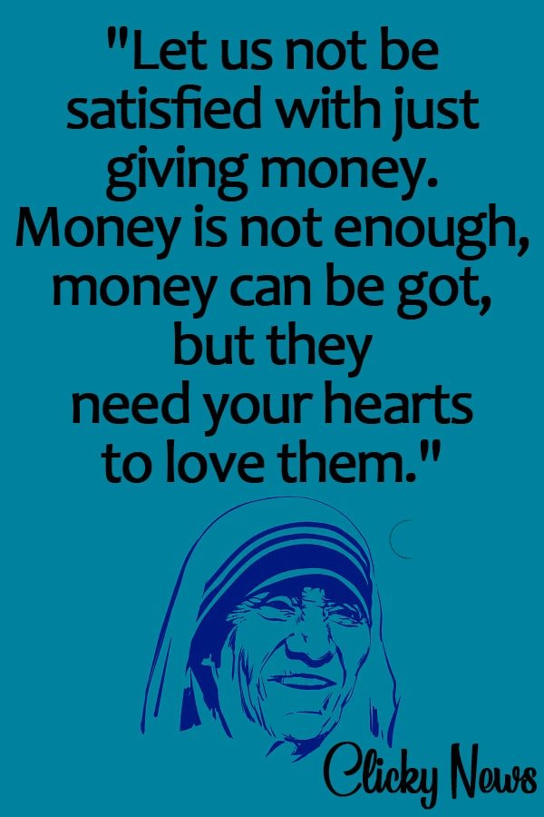 - “Let us not be satisfied with just giving money. Money is not enough, money can be got, but they need your hearts to love them.”