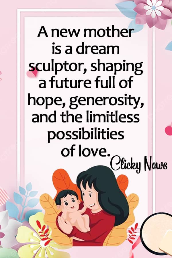 Being a New mother is a wonderful and life-changing experience, but it can also be difficult and stressful. It is totally normal to feel overwhelmed and cut off in the early stages of being a new mother. It’s important to realize, however, that you are not alone and that a lot of other mothers have gone through the exact same experience as you. Clicky News has compiled a list of 80+ new mom quotes and words of motivation in order to motivate and strengthen new moms as they move forward on this new chapter in their lives.
