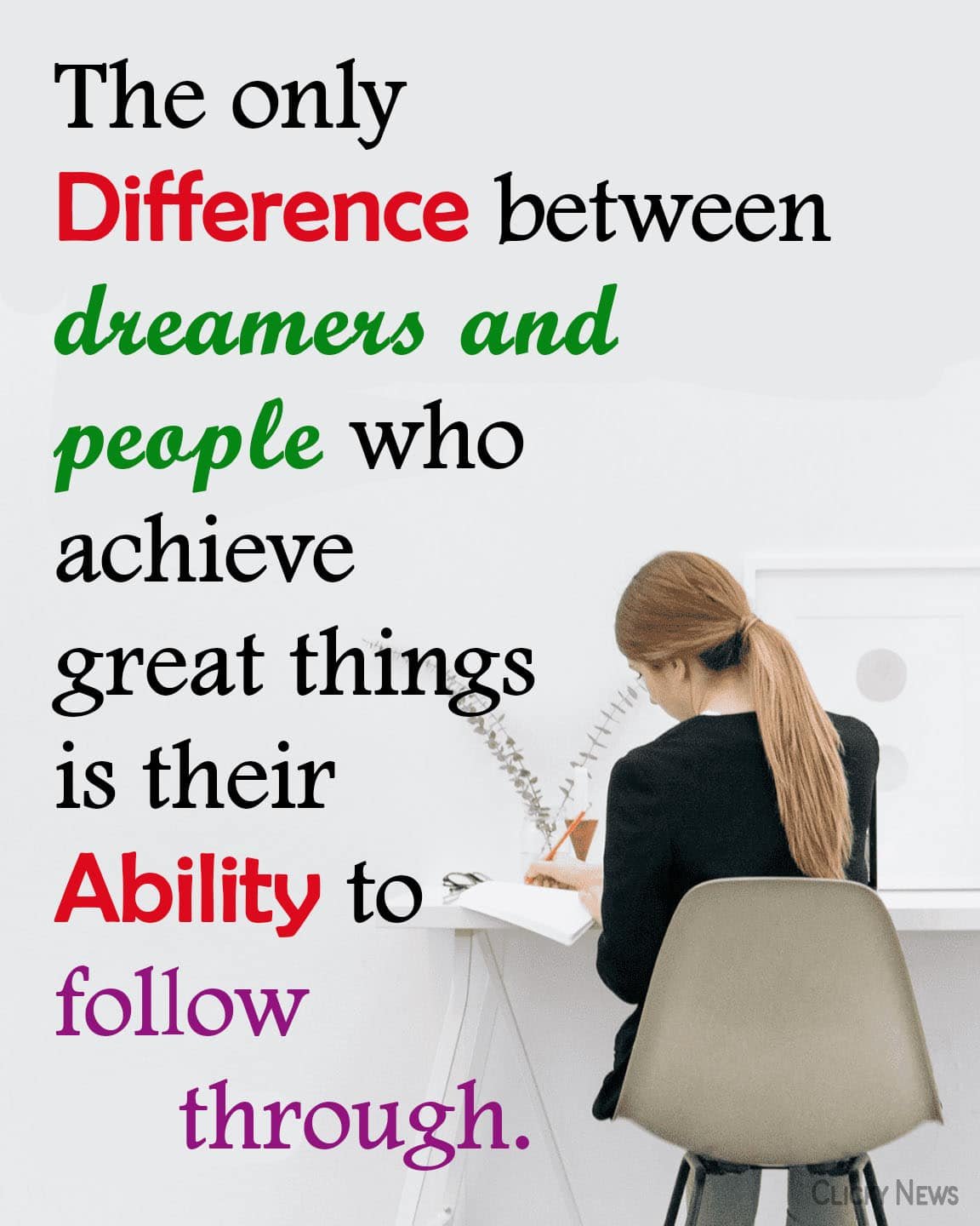 - The only difference between dreamers and people who achieve great things is their ability to follow through.
