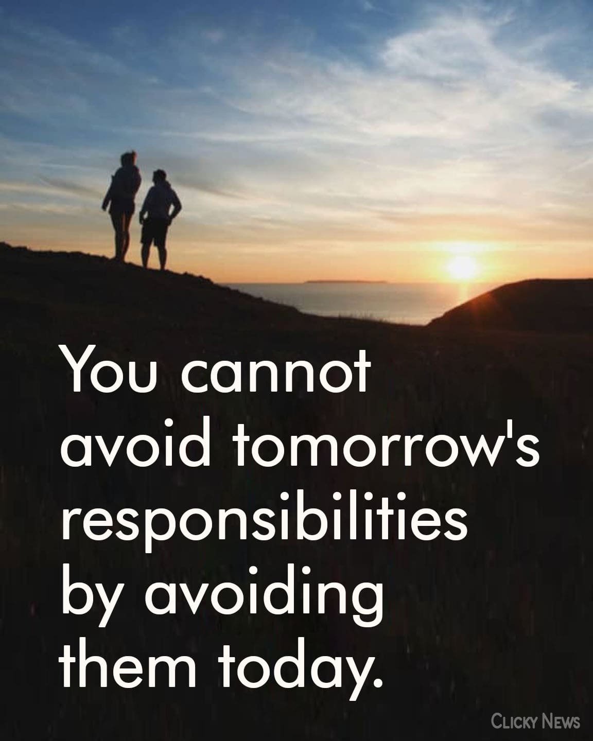 - You cannot avoid tomorrow’s responsibilities by avoiding them today.