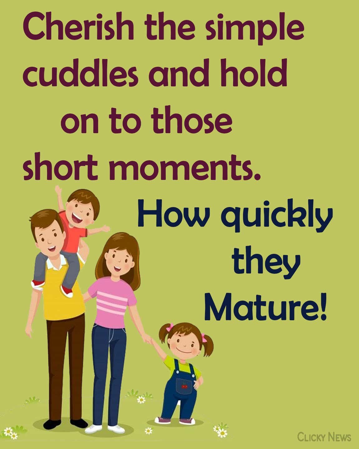 - Always value each tiny snuggle; there will always be a last one as your children grow up.