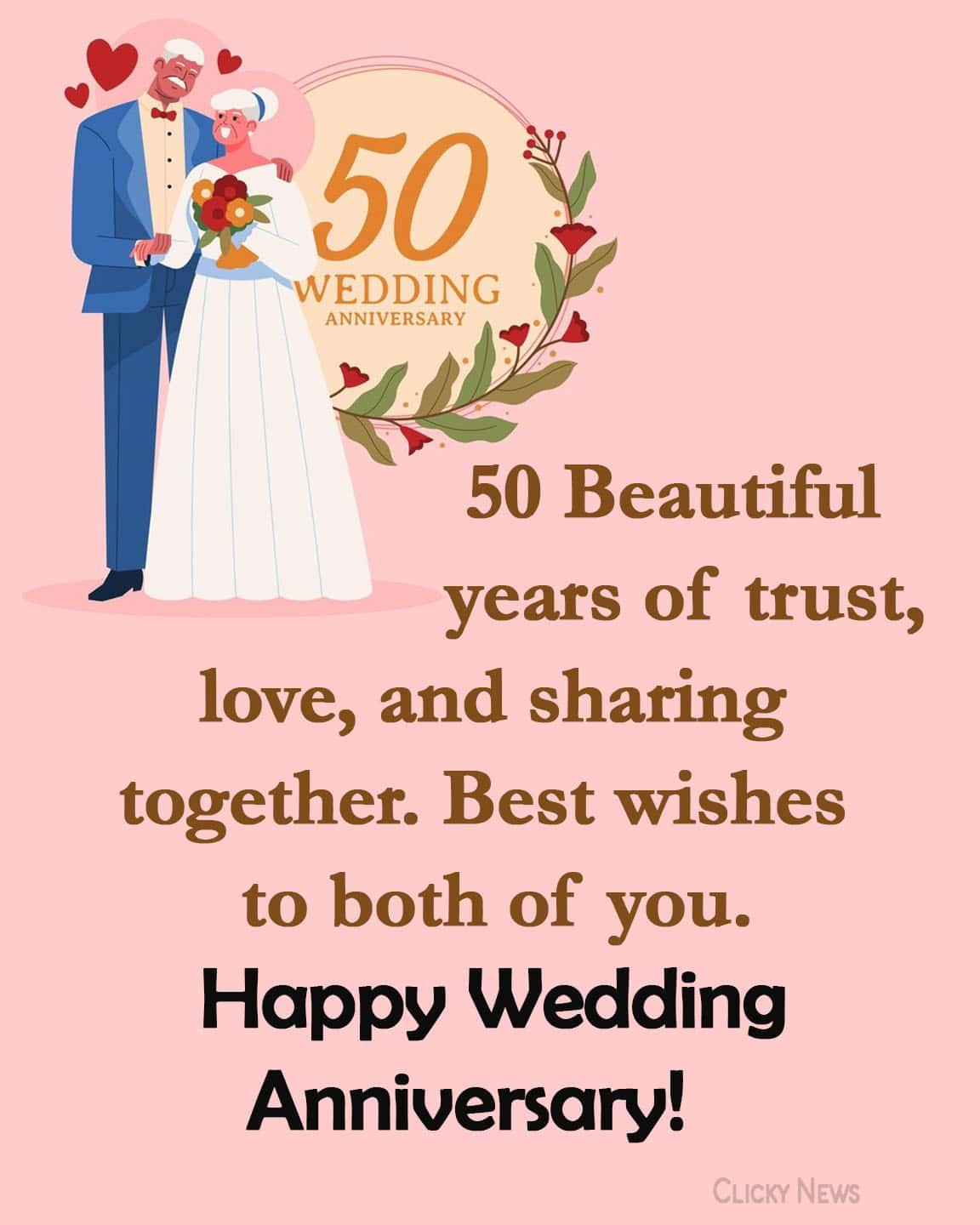- 50 beautiful years of trust, love, and sharing together. Best wishes to both of you. Happy wedding anniversary!