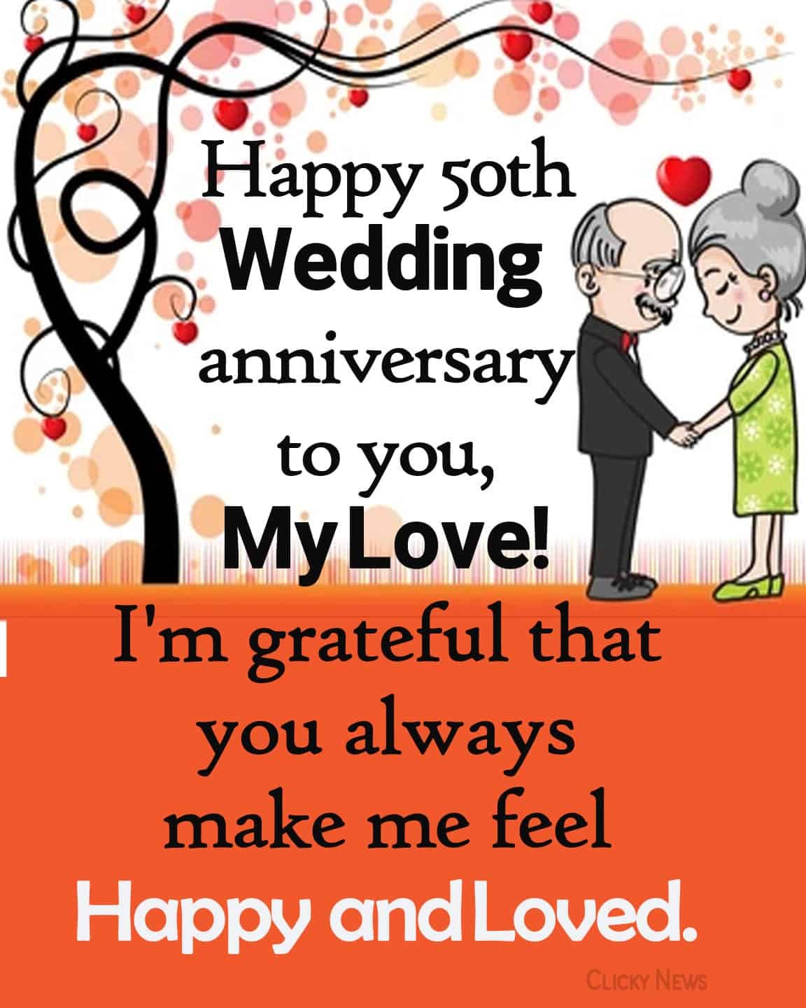 - Happy 50th wedding anniversary to you, my Love! I’m grateful that you always make me feel happy and loved.