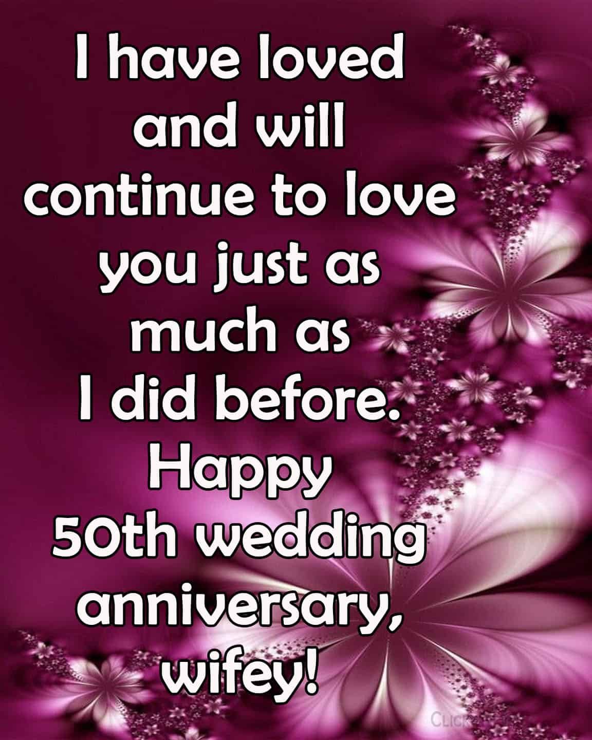 - I have loved and will continue to love you just as much as I did before. Happy 50th wedding anniversary, wifey!