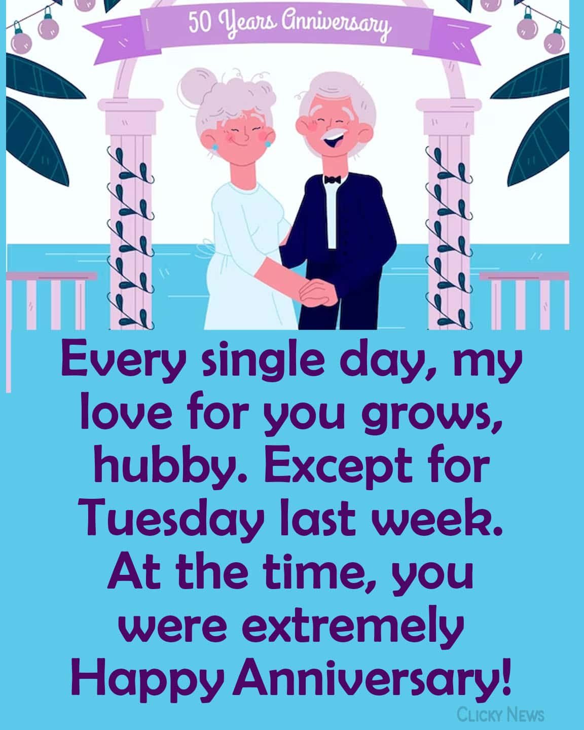 - On this anniversary, I want you to know how much I’ve loved irritating you over the years and how happy I am to carry on doing so forever. Happy 50th wedding anniversary, love!