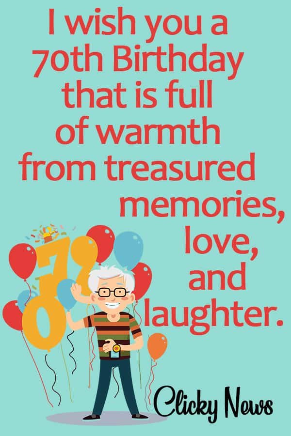 - I wish you a 70th birthday that is full of warmth from treasured memories, love, and laughter.