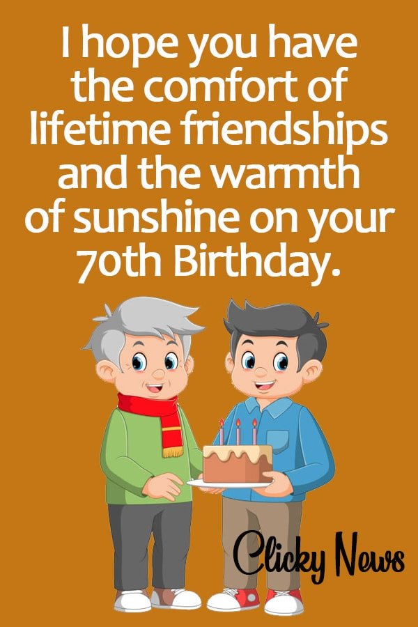 - I hope you have the comfort of lifetime friendships and the warmth of sunshine on your 70th birthday.