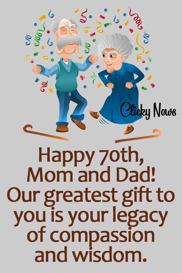 - Happy 70th, Mom and Dad! Our greatest gift to you is your legacy of compassion and wisdom.