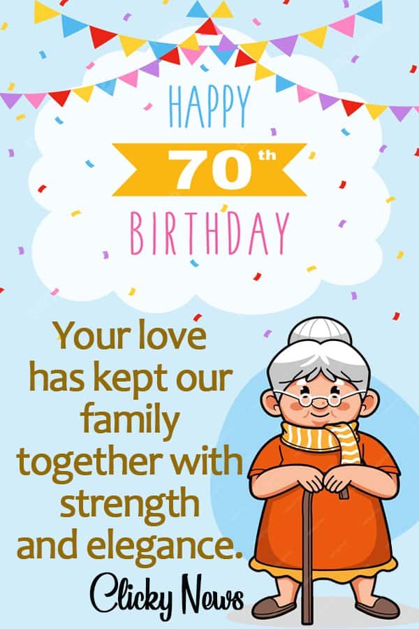 - Happy 70th Birthday! Your love has kept our family together with strength and elegance.