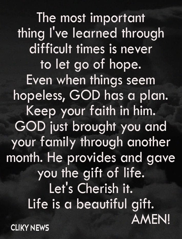 “Sometimes I don’t understand why things happen the way they do. But I know, in the end, that God has a plan.”